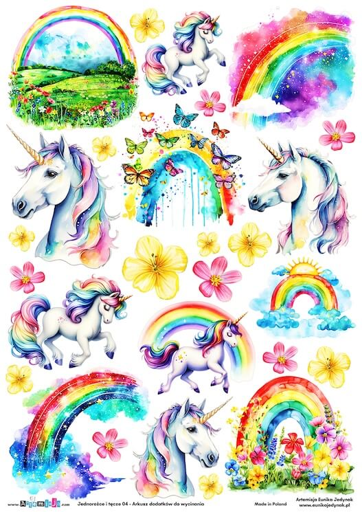Arkusz dodatków do wycinania – Jednorożce i tęcze 04