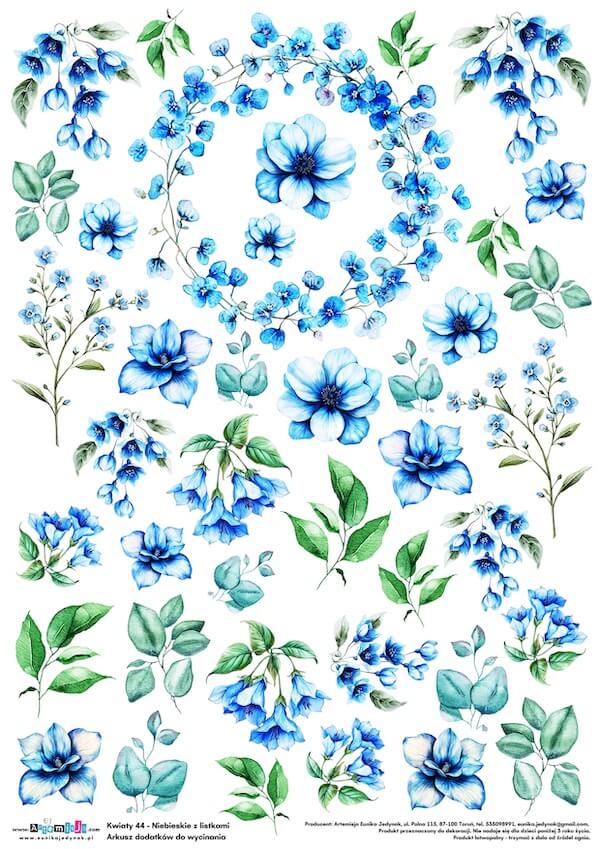 Arkusz dodatków do wycinania – Kwiaty 44 – Niebieskie z listkami