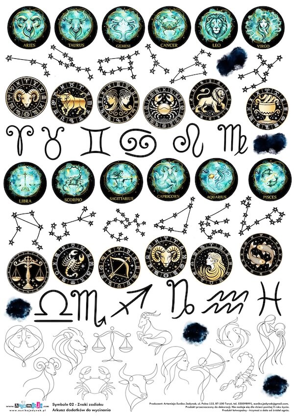 Arkusz dodatków do wycinania – Symbole 02 – Znaki zodiaku