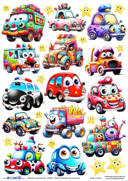 Arkusz dodatków do wycinania – Dziecięce marzenia 07 – Autka