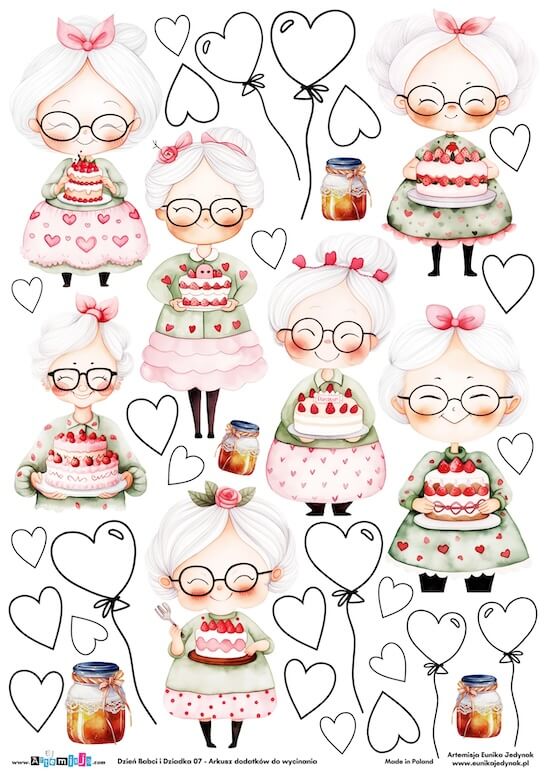 Arkusz dodatków do wycinania – Dzień Babci i Dziadka 07 – BABCIA