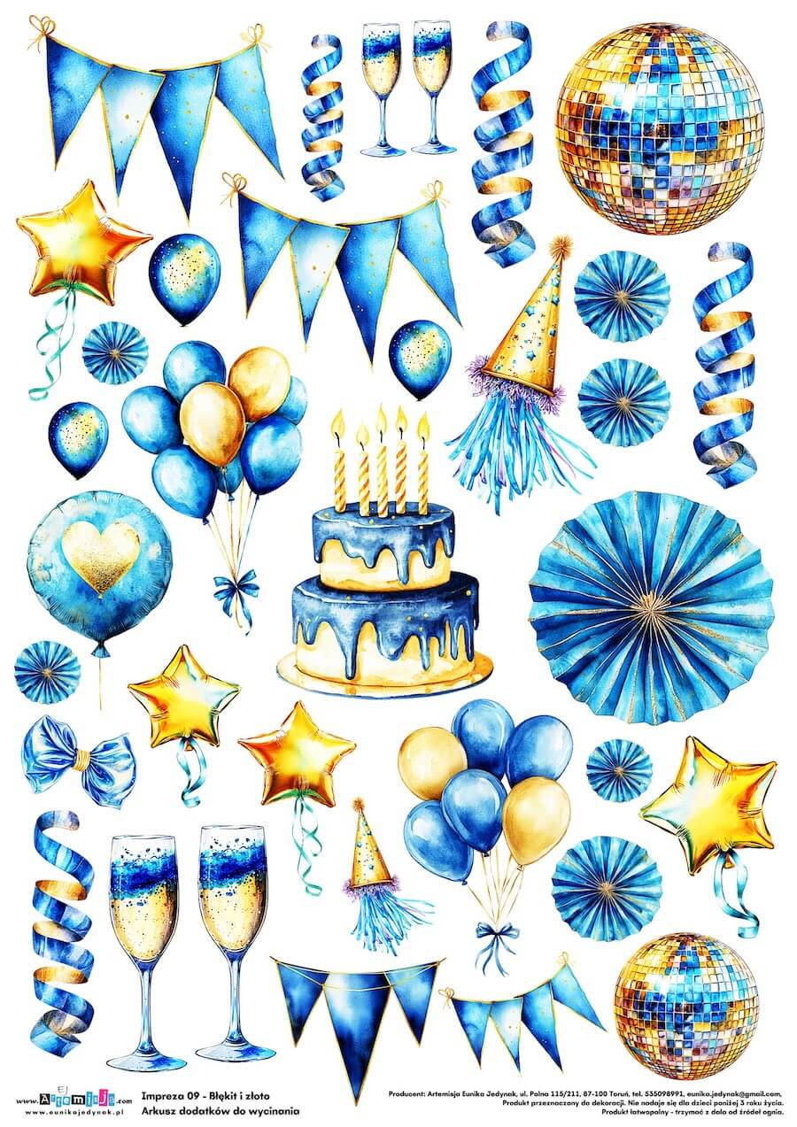 Arkusz dodatków do wycinania – Impreza 09 – Błękit i złoto