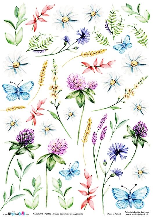 Arkusz dodatków do wycinania – Kwiaty 08 – Polne