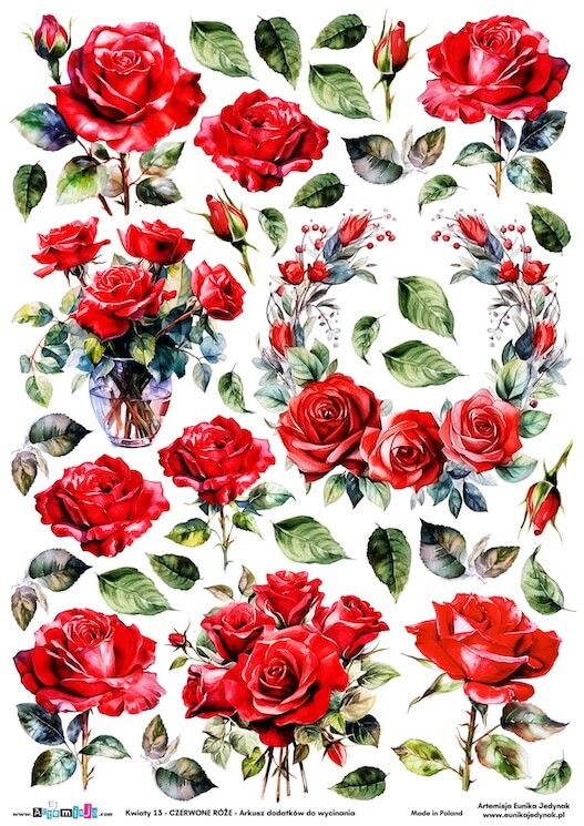 Arkusz dodatków do wycinania – Kwiaty 13 – Czerwone róże