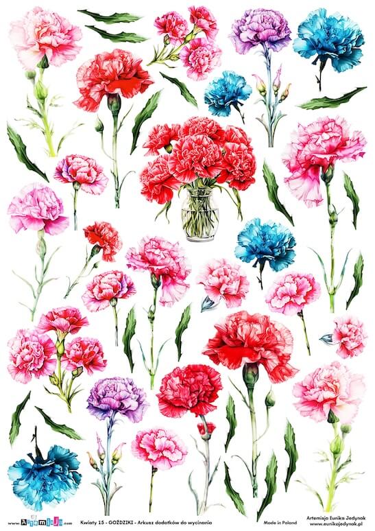 Arkusz dodatków do wycinania – Kwiaty 15 – Goździki
