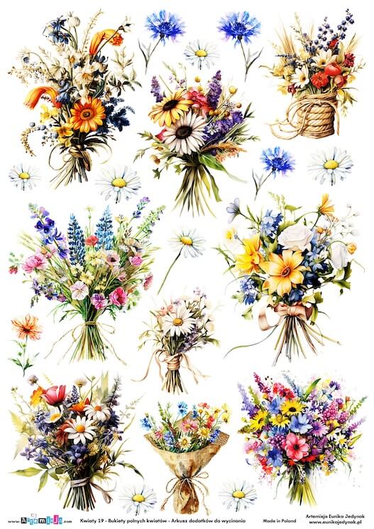 Arkusz dodatków do wycinania – Kwiaty 19 – Bukiety polnych kwiatów