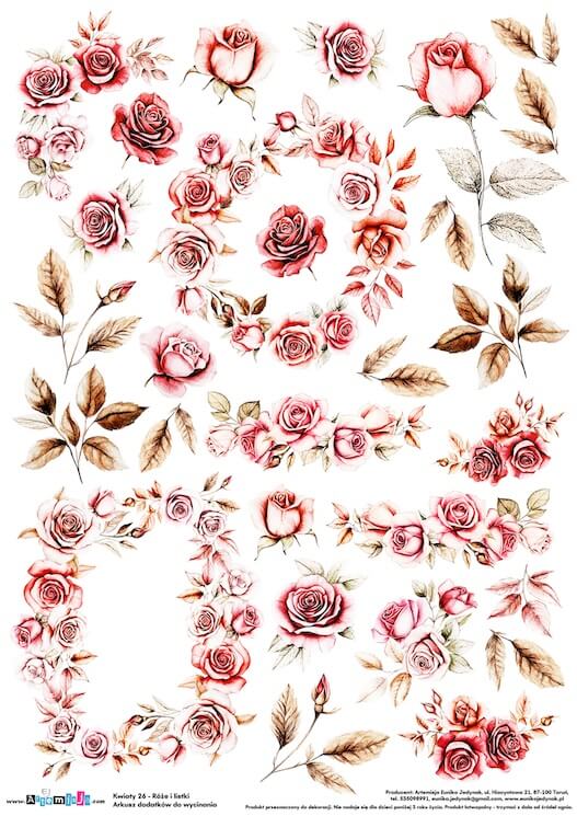 Arkusz dodatków do wycinania – Kwiaty 26 – Róże i listki