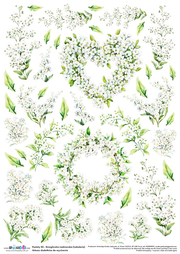 Arkusz dodatków do wycinania – Kwiaty 33 – Smagliczka nadmorska (Lobularia)