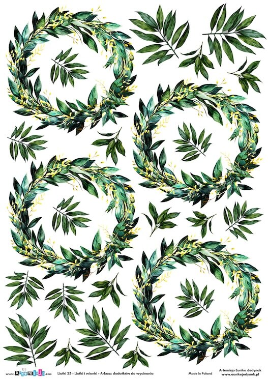 Arkusz dodatków do wycinania – Listki 23 – Listki i wianki