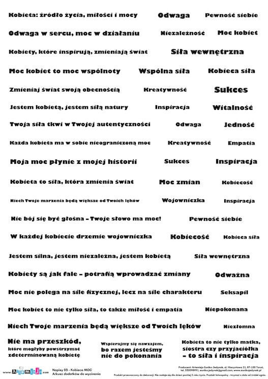 Arkusz dodatków do wycinania – Napisy 03 – Kobieca MOC