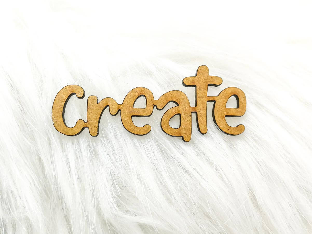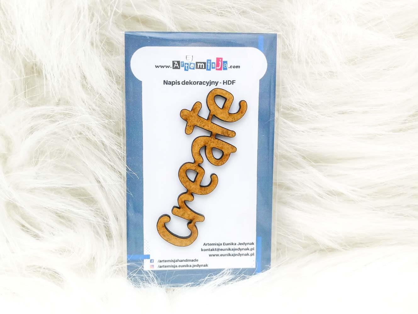 Napis dekoracyjny HDF – CREATE + grafiki na odwrocie etykiety