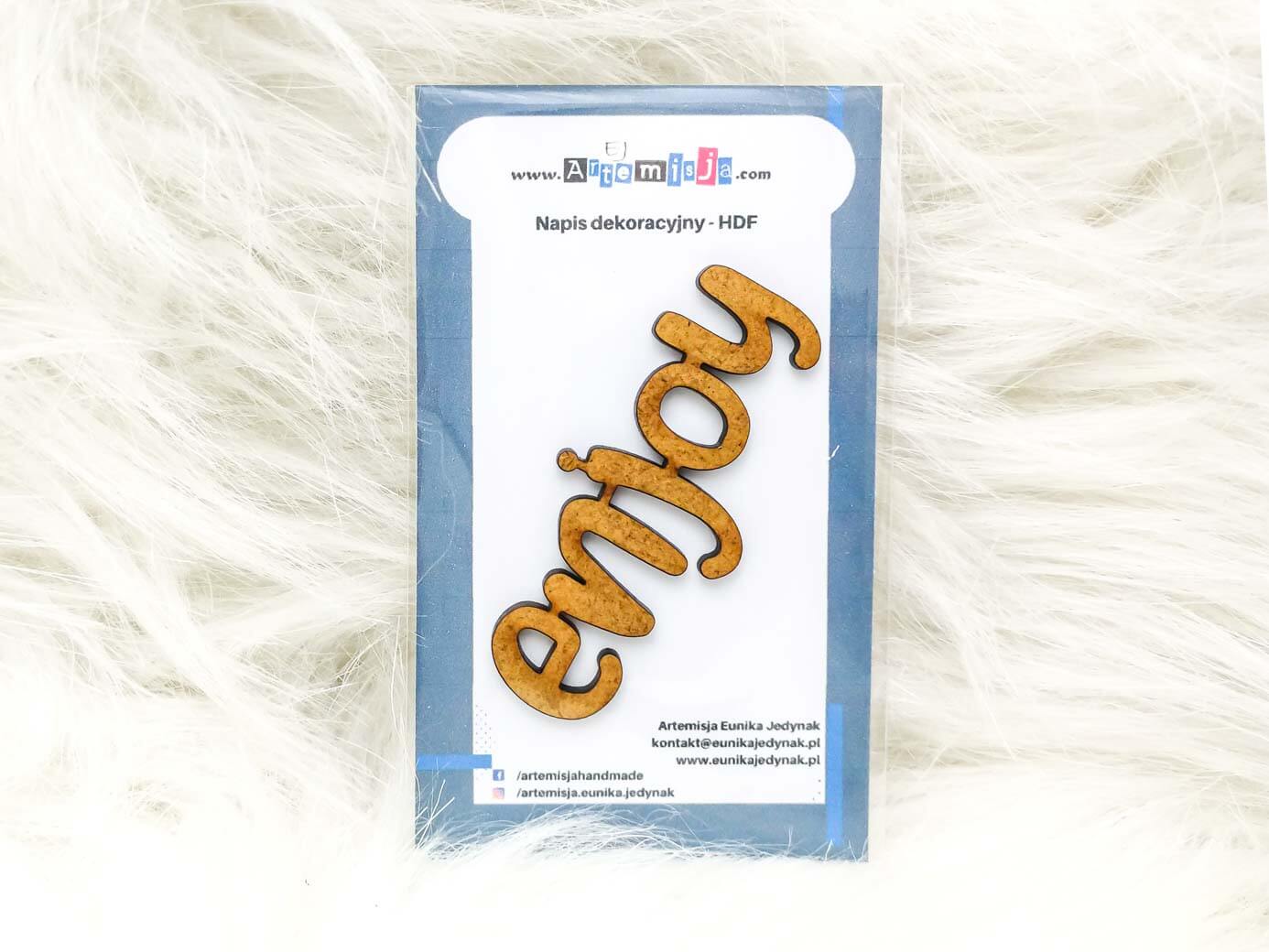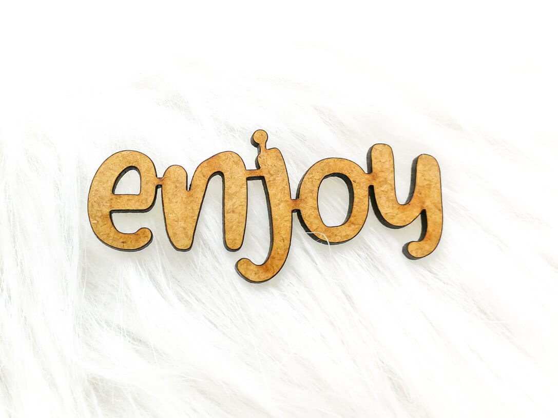 Napis dekoracyjny HDF – ENJOY + grafiki na odwrocie etykiety