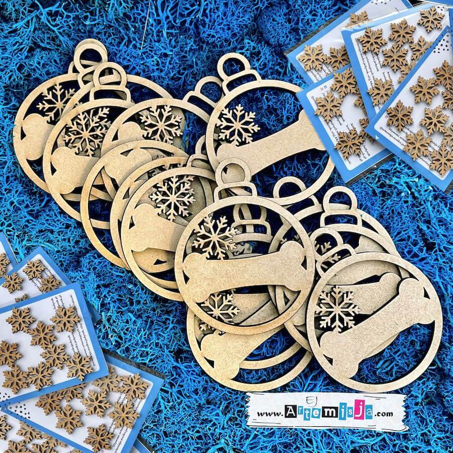Prezent gwiazdkowy dla klientów – 1 szt. Bombka, kość, śnieżynka – personalizacja wzoru + etykieta, sznurek, folijka