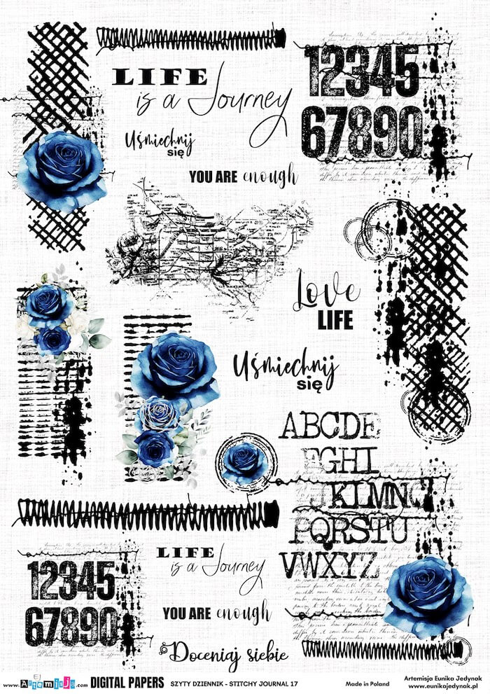 Szyty dziennik 017 – Artemisja Digital – Arkusz dodatków do wycinania
