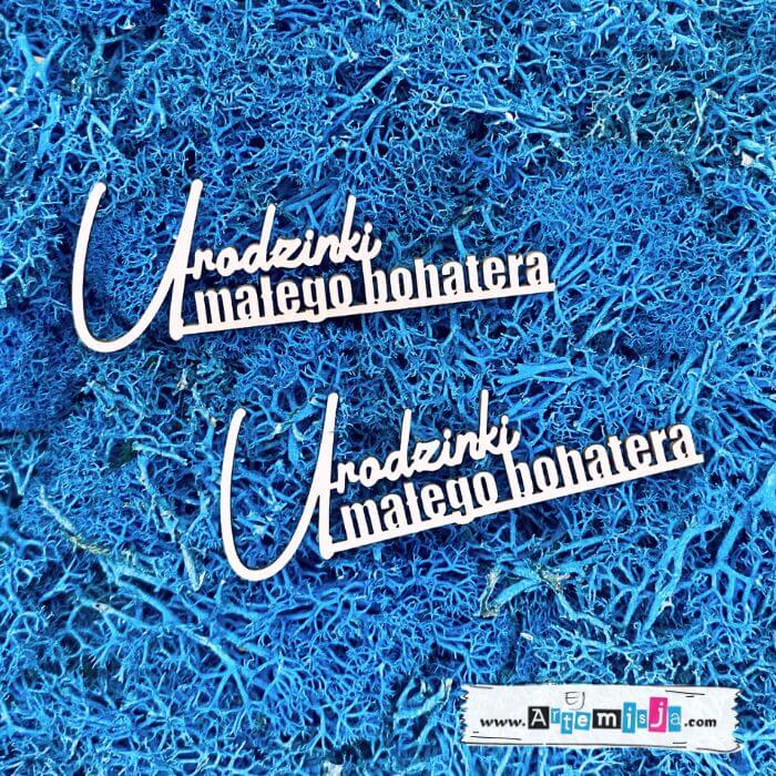 Tekturka: Napis 13 – Urodzinki małego bohatera + grafiki na odwrocie etykiety