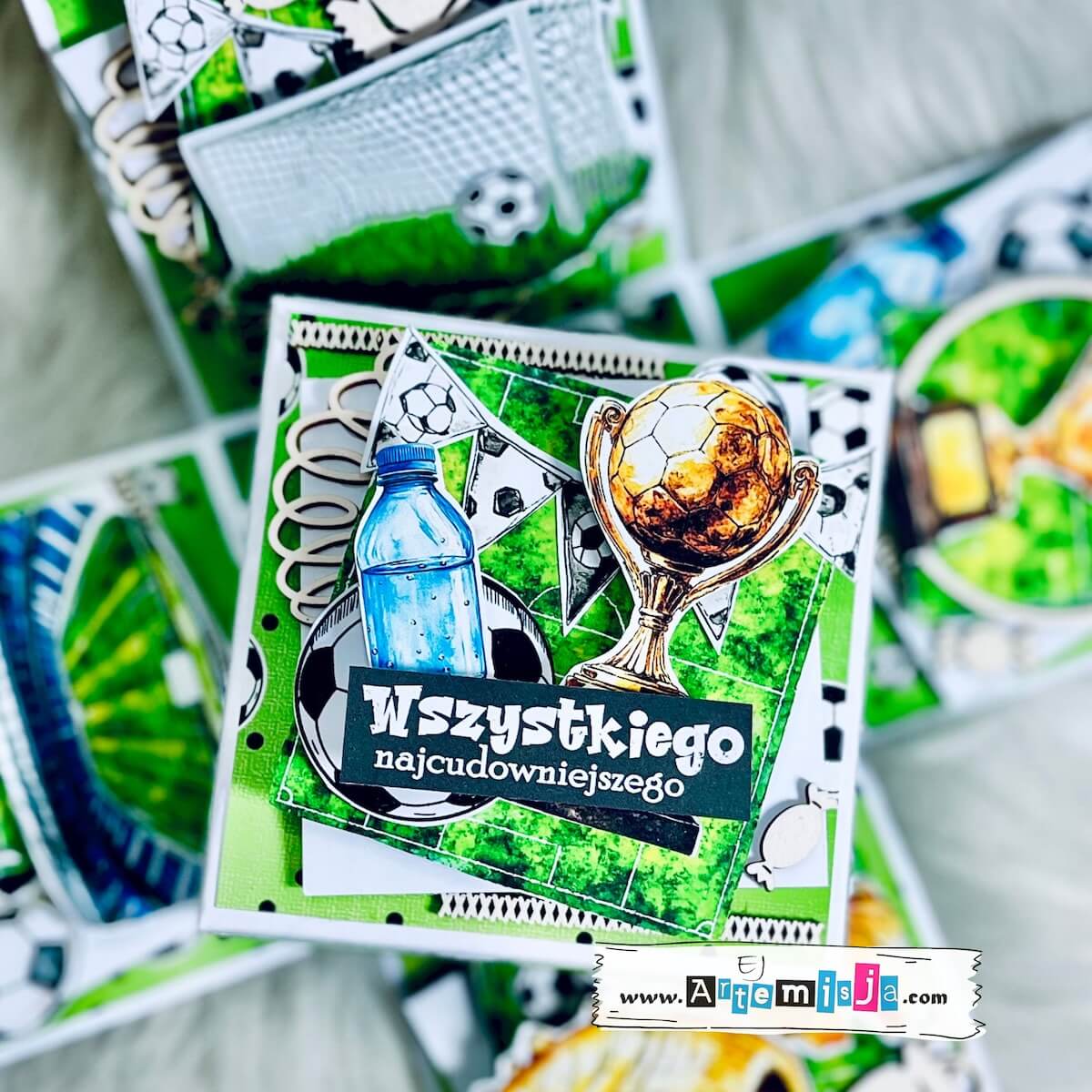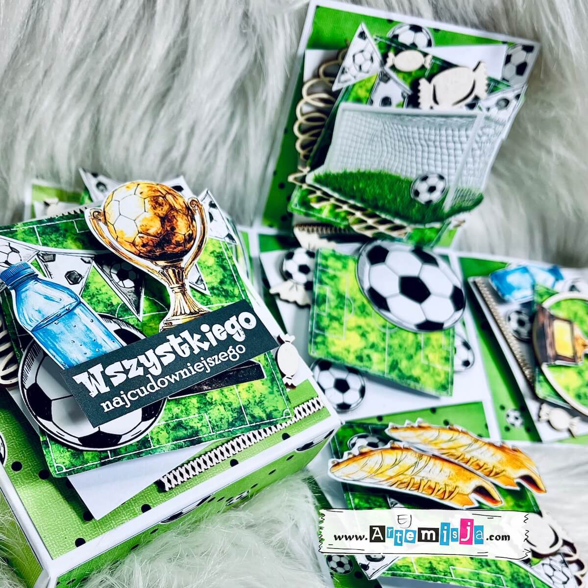 Zestaw warsztatowy do exploding boxa – PIŁKA NOŻNA (baza, papiery, grafiki, tekturki, napis, klej)